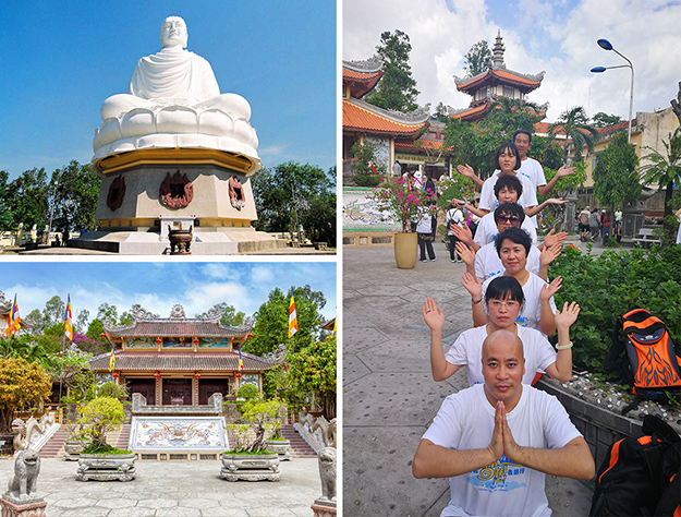 芽莊有一座以中文命名的佛教寺廟龍山寺,很多僧侶在這里修行。龍山寺是芽莊最大的寺院,始建于1889年,經(jīng)過數(shù)次裝修、重建,成為今天的外貌,寺內(nèi)有金色巨龍雕花裝飾、有蓮花池、佛教壁畫等。從正殿右邊,上 152 個(gè)石階后,就會(huì)看到高達(dá) 24 米的一座大佛。在芽莊市區(qū)任何地方都能看見這座巨大的白色大佛,安坐于蓮花之上,俯視眾生的歡樂與煩擾。綠之韻精英們領(lǐng)略它獨(dú)特的文化積淀和人文景觀,感受著越南人民的虔誠信仰與生活熱情。