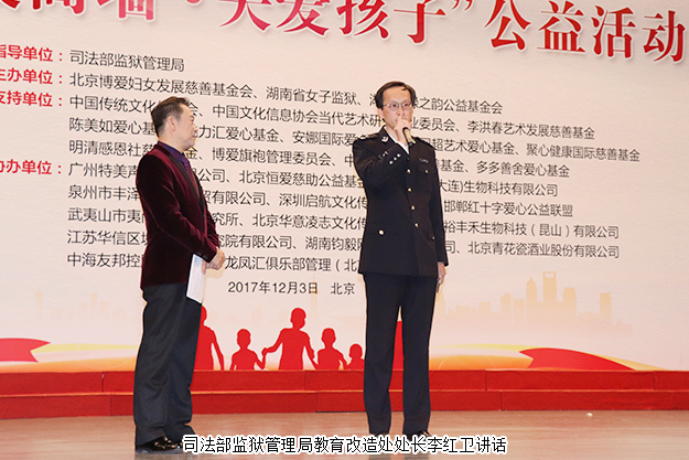 晚會首先由北京博愛婦女發(fā)展慈善基金會會長陳富剛作溫暖致辭。他向與會嘉賓介紹道:2017年,慈善基金會的幫扶工作在各方力量的幫助下,上了一個新的臺階?!扒榕邏ΑりP(guān)愛孩子”公益項目得到了司法部監(jiān)獄管理局大力支持,今年情暖高墻公益項目在全國部分省市監(jiān)獄對服刑人員的失學(xué)孩子開展了系列幫扶工作;今年6月份基金會與愛心企業(yè)綠之韻集團共同在湖南少數(shù)民族地區(qū)湘西自治洲為1萬名貧困婦女進行“兩癌”免費篩查;今年基金會還邀請了解放軍304醫(yī)院、海軍總醫(yī)院、北京中醫(yī)藥大學(xué)附屬三醫(yī)院醫(yī)務(wù)專家在湖南女子監(jiān)獄為基層警察和服刑人員患者開展了“慈善義診”活動等等。2017年慈善基金會幫助貧困母親、兒童及服刑人員的孩子人數(shù)達到了12000人次,讓愛的力量得到了溫暖延續(xù)。