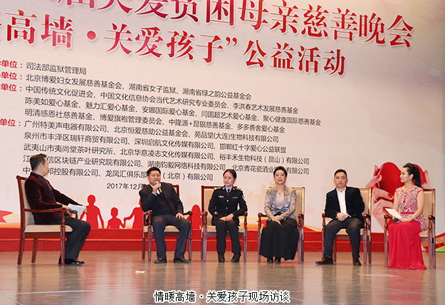 善行天下,愛心綻放。2017年12月3日晚,由司法部監(jiān)獄管理局指導(dǎo),北京博愛婦女發(fā)展慈善基金會、湖南省女子監(jiān)獄、湖南省綠之韻公益基金會、中國傳統(tǒng)文化促進會等單位共同舉辦的“2017第二屆關(guān)愛貧困母親慈善晚會暨情暖高墻·關(guān)愛孩子”公益活動在全國政協(xié)禮堂成功舉行。