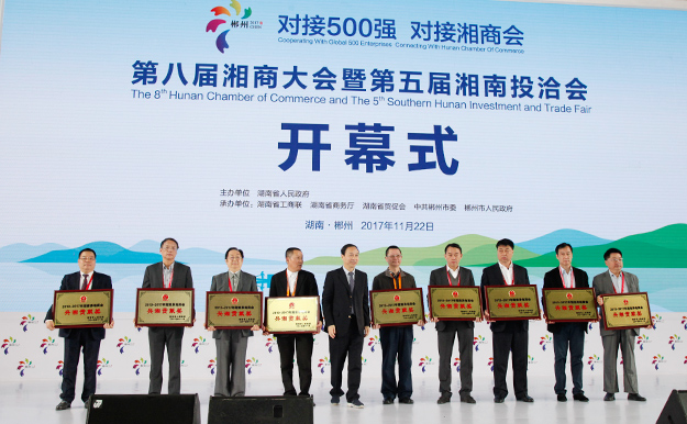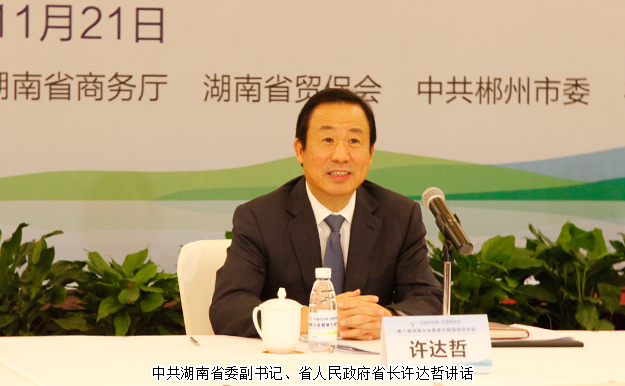 開(kāi)幕式上,湖南省人民政府副省長(zhǎng)何報(bào)翔作省情推介,中共湖南省委副書記、省人民政府省長(zhǎng)許達(dá)哲出席開(kāi)幕式并為興湘貢獻(xiàn)獎(jiǎng)獲獎(jiǎng)單位頒獎(jiǎng)。許達(dá)哲省長(zhǎng)在講話中表示,湖南自古以來(lái)英才輩出,有著深厚的文化和歷史底蘊(yùn),廣大的湘商傳承著湖湘文化的精髓,涌現(xiàn)了一批又一批的商界精英。自2007年由省人民政府在長(zhǎng)沙主辦了首屆湘商大會(huì),10年來(lái),湘商已成為湖南的一張獨(dú)特的商業(yè)文化名片,湘商大會(huì)、湘南投洽會(huì)成為我省一年一度的重大經(jīng)貿(mào)活動(dòng),也是我省擴(kuò)大開(kāi)放、加大招商引資、促進(jìn)區(qū)域經(jīng)濟(jì)合作的重大平臺(tái),更是深入實(shí)施“創(chuàng)新引領(lǐng)、開(kāi)放崛起”戰(zhàn)略,加快推進(jìn)“對(duì)接500強(qiáng)、提升產(chǎn)業(yè)鏈”及“對(duì)接湘商會(huì)、建設(shè)新家鄉(xiāng)”等專項(xiàng)行動(dòng)的重要舉措。新時(shí)代新湘商,在日新月異的今天,湘商華麗轉(zhuǎn)身,發(fā)展出“責(zé)任、創(chuàng)新、務(wù)實(shí)、和諧、誠(chéng)信”的新湘商文化精神。湘商大會(huì)也成為了湖南每年一度的經(jīng)濟(jì)盛宴和重要的項(xiàng)目孵化器,是各地成功湘商緊密聚首、交流合作的一面精神旗幟。他希望,廣大湘商能夠在湖南這片投資熱土上創(chuàng)業(yè)興業(yè),繼續(xù)為家鄉(xiāng)的建設(shè)發(fā)展獻(xiàn)計(jì)獻(xiàn)力,與湖南一起把握發(fā)展機(jī)遇,在推動(dòng)湖南發(fā)展的同時(shí),將企業(yè)做大、做強(qiáng)、做優(yōu),實(shí)現(xiàn)共贏發(fā)展;與家鄉(xiāng)人民一道,共建富饒美麗幸福新湖南。