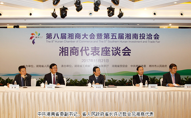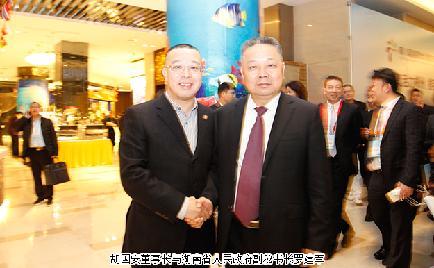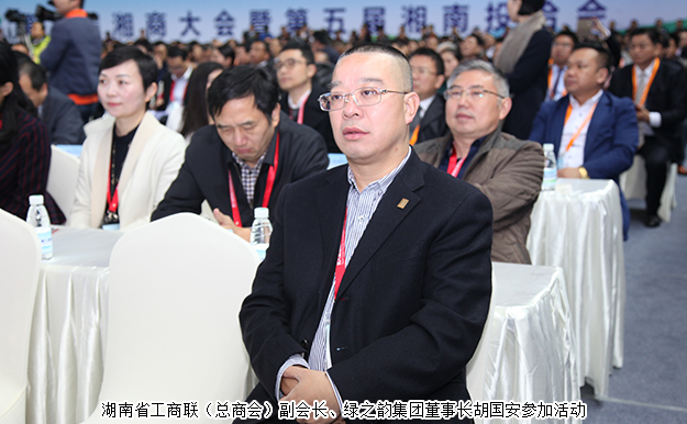 天下湘商聚郴州,攜手共創(chuàng)新時(shí)代。2017年11月21-24日,2017湖南經(jīng)濟(jì)合作洽談會(huì)暨第八屆湘商大會(huì)、第五屆湘南投洽會(huì)在湖南郴州隆重舉行。中共湖南省委副書記、省人民政府省長(zhǎng)許達(dá)哲,湖南省人大常委會(huì)副主任陳君文,湖南省人民政府副省長(zhǎng)何報(bào)翔,湖南省政協(xié)副主席張大方,湖南省人民政府副秘書長(zhǎng)羅建軍,中共郴州市委副書記、市長(zhǎng)劉志仁等領(lǐng)導(dǎo)出席活動(dòng)。湖南省工商聯(lián)(總商會(huì))副會(huì)長(zhǎng)、綠之韻集團(tuán)董事長(zhǎng)胡國(guó)安與藍(lán)思科技董事長(zhǎng)周群飛、華大基因董事長(zhǎng)汪建、吉祥人壽董事長(zhǎng)周濤、香港銅鑼灣集團(tuán)董事副總裁李濟(jì)華等優(yōu)秀企業(yè)家們一起應(yīng)邀參加活動(dòng),與來(lái)自多家世界500強(qiáng)、中國(guó)500強(qiáng)、中國(guó)民營(yíng)500強(qiáng)企業(yè)和海內(nèi)外200多家湖南異地商會(huì)2000余名湘商精英齊聚郴州,縱論湘商發(fā)展大計(jì)。