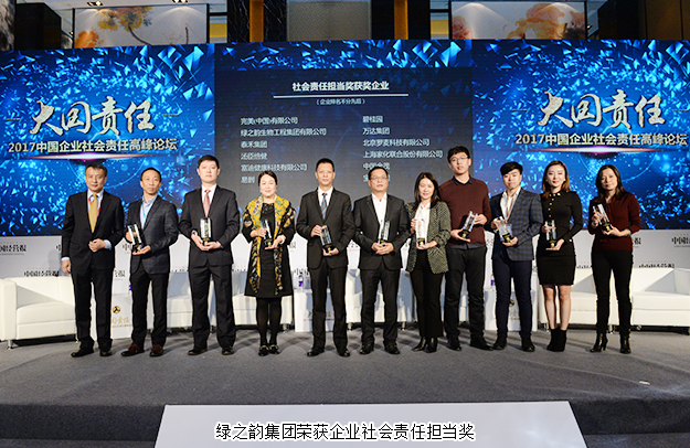 2017年11月21日,由《中國(guó)經(jīng)營(yíng)報(bào)》社主辦的“大國(guó)責(zé)任——2017中國(guó)企業(yè)社會(huì)責(zé)任高峰論壇”在北京舉行。本次論壇以“大國(guó)責(zé)任”為主題,邀請(qǐng)業(yè)內(nèi)專家及行業(yè)知名企業(yè)代表,圍繞企業(yè)如何參與國(guó)家精準(zhǔn)扶貧、新時(shí)代背景下的企業(yè)社會(huì)責(zé)任、企業(yè)扶貧攻堅(jiān)以及企業(yè)新責(zé)任等相關(guān)問題展開討論。中央電視臺(tái)財(cái)經(jīng)主持人姚雪松擔(dān)任主持。國(guó)務(wù)院扶貧辦政策法規(guī)司原司長(zhǎng)、中國(guó)扶貧開發(fā)協(xié)會(huì)副會(huì)長(zhǎng)劉福合,中國(guó)社會(huì)科學(xué)院企業(yè)社會(huì)責(zé)任研究中心主任鐘宏武應(yīng)邀出席本次論壇并發(fā)表演講。大會(huì)頒發(fā)了社會(huì)責(zé)任擔(dān)當(dāng)獎(jiǎng)、社會(huì)責(zé)任最佳實(shí)踐獎(jiǎng)、社會(huì)責(zé)任新銳獎(jiǎng)和優(yōu)秀模式創(chuàng)新獎(jiǎng)等四個(gè)獎(jiǎng)項(xiàng),綠之韻集團(tuán)榮獲企業(yè)社會(huì)責(zé)任擔(dān)當(dāng)獎(jiǎng)。綠之韻集團(tuán)董事、總裁,湖南省綠之韻公益基金會(huì)理事長(zhǎng)勞嘉受邀參加論壇,并作為圓桌論壇嘉賓闡述綠之韻公益責(zé)任理念。