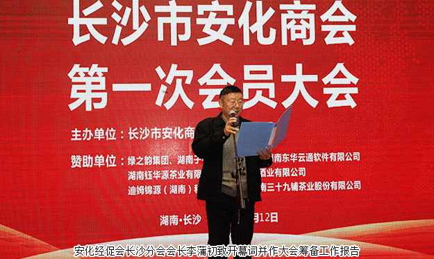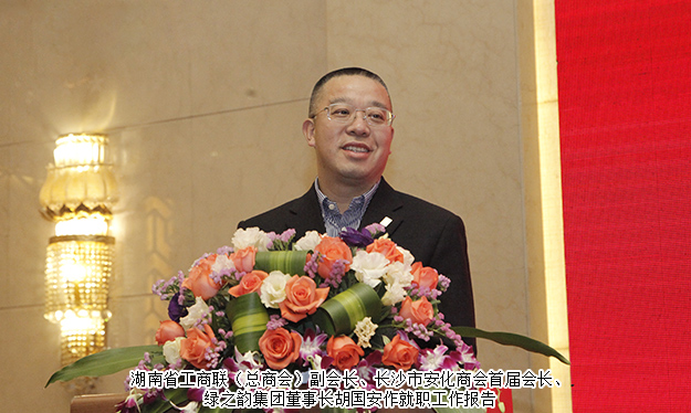 隨后,長(zhǎng)沙市安化商會(huì)首屆會(huì)長(zhǎng)胡國(guó)安向大會(huì)作就職工作報(bào)告。他首先向一直以來(lái)關(guān)心和支持長(zhǎng)沙市安化商會(huì)籌建工作的各位領(lǐng)導(dǎo)和在商會(huì)籌建過(guò)程中辛勤付出的各位鄉(xiāng)友、同仁致以崇高的敬意和衷心的感謝。他在報(bào)告中對(duì)商會(huì)今后的發(fā)展提出了以下幾點(diǎn)意見(jiàn):一要將安化商會(huì)打造成“學(xué)習(xí)型現(xiàn)代商會(huì)”,為商會(huì)會(huì)員搭建學(xué)習(xí)平臺(tái),促進(jìn)商會(huì)的健康可持續(xù)發(fā)展;二要讓商會(huì)在長(zhǎng)沙生根發(fā)芽,把商會(huì)打造成安化人的家園;三要將商會(huì)打造成一個(gè)互幫互助的平臺(tái),讓商會(huì)會(huì)員企業(yè)通過(guò)商會(huì)這個(gè)平臺(tái)得到充分拓展。胡國(guó)安董事長(zhǎng)進(jìn)一步表示,此次成功當(dāng)選長(zhǎng)沙市安化商會(huì)首屆會(huì)長(zhǎng),既是榮譽(yù),也是責(zé)任,安化商會(huì)的健康發(fā)展離不開(kāi)各級(jí)領(lǐng)導(dǎo)的大力支持和關(guān)懷,離不開(kāi)社會(huì)各界的關(guān)注,更離不開(kāi)廣大會(huì)員、企業(yè)家們的信任與合作,希望商會(huì)的各位會(huì)員和企業(yè)家們,能在新時(shí)代中國(guó)特色社會(huì)主義思想的指引下,不忘初心,牢記使命,發(fā)揚(yáng)安化企業(yè)家“精誠(chéng)團(tuán)結(jié)、互幫互助”的精神,一起為國(guó)家的繁榮富強(qiáng),為長(zhǎng)沙市、安化縣社會(huì)經(jīng)濟(jì)發(fā)展貢獻(xiàn)力量,展示出長(zhǎng)沙市安化商會(huì)企業(yè)家的風(fēng)采!