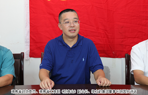 “秋老虎”的炎炎暑氣擋不住結(jié)對(duì)幫扶的絲絲溫情,舟車勞頓擋不住共謀發(fā)展的拳拳熱心。為了積極響應(yīng)長(zhǎng)沙市委市政府“百企連百戶”活動(dòng)號(hào)召,2017年9月18日,綠之韻集團(tuán)走進(jìn)瀏陽(yáng)市小河鄉(xiāng)烏石村開(kāi)展點(diǎn)對(duì)點(diǎn)幫扶活動(dòng),長(zhǎng)沙市政協(xié)辦公廳副調(diào)研員兼機(jī)關(guān)黨委專職副書記黃領(lǐng)先,瀏陽(yáng)經(jīng)開(kāi)區(qū)黨群工作局局長(zhǎng)、企業(yè)黨委專職副書記陳飛雪,瀏陽(yáng)市小河鄉(xiāng)黨委書記劉林志,烏石村第一書記鄧水平等領(lǐng)導(dǎo)參加活動(dòng)。湖南省政協(xié)委員、湖南省工商聯(lián)(總商會(huì))副會(huì)長(zhǎng)、綠之韻集團(tuán)董事長(zhǎng)胡國(guó)安,綠之韻集團(tuán)黨委書記劉云、副書記許達(dá)仲出席簽約儀式,并為點(diǎn)對(duì)點(diǎn)幫扶家庭掛牌。