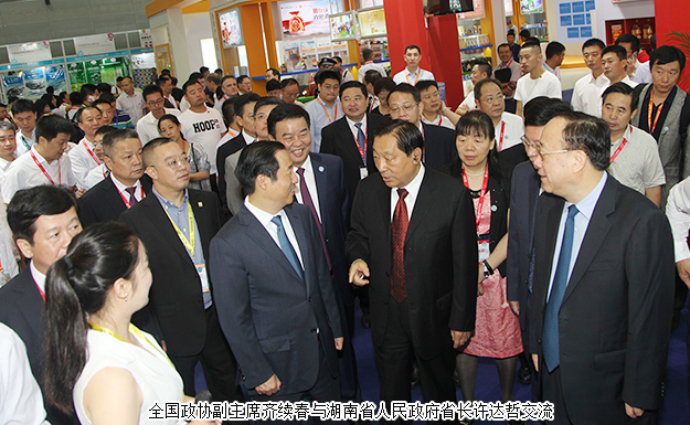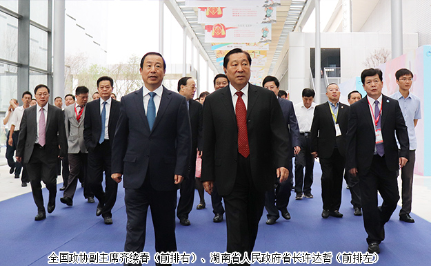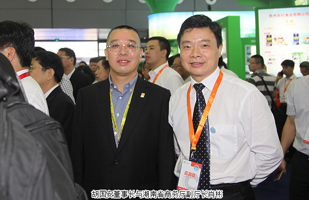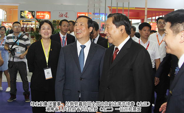 2017年9月14日,由商務(wù)部和湖南省人民政府共同主辦的中國食品餐飲業(yè)創(chuàng)新發(fā)展大會暨2017中國食品餐飲博覽會(以下簡稱食餐會)在長沙隆重啟幕。全國政協(xié)副主席齊續(xù)春、商務(wù)部副部長王炳南、湖南省人民政府省長許達(dá)哲、中共湖南省委常委、長沙市委書記胡衡華,廣西壯族自治區(qū)人大常委會副主任高雄,湖南省人民政府副省長何報翔,湖南省政協(xié)原副主席劉曉,澳門投資促進(jìn)局主席張祖榮等領(lǐng)導(dǎo)出席活動。湖南省工商聯(lián)(總商會)副會長、綠之韻集團(tuán)董事長胡國安,湖南省工商聯(lián)女商會副會長、綠之韻集團(tuán)董事、總裁勞嘉受邀出席開幕式,并在開幕式前陪同全國政協(xié)副主席齊續(xù)春、商務(wù)部副部長王炳南、湖南省人民政府省長許達(dá)哲等領(lǐng)導(dǎo)一行巡視展館。