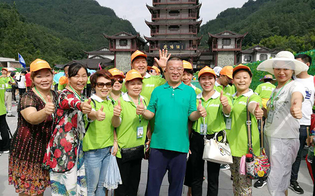 盛夏八月,綠之韻人在石筍林立中感受奇觀,在青山綠水中揮灑涼意,在家人團(tuán)聚中感受快樂。2017年8月9日-11日,綠之韻營銷精英張家界夏日清涼之旅成功舉行,來自全國各地的綠韻四五家人們在綠之韻集團(tuán)董事長胡國安、綠之韻集團(tuán)副總經(jīng)理夏運(yùn)良的帶領(lǐng)下,來到集桂林之秀、黃山之奇、華山之險(xiǎn)、泰山之雄于一體的張家界,共同度過了一段快樂與感動交織的美好旅程。