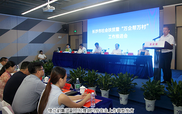 為認(rèn)真貫徹落實(shí)中央、省委、市委關(guān)于脫貧攻堅(jiān)系列政策部署,總結(jié)前期工作經(jīng)驗(yàn),加大扶貧開發(fā)工作力度,2017年8月4日,長(zhǎng)沙市社會(huì)扶貧暨“萬企幫萬村”工作推進(jìn)會(huì)在望城區(qū)成功召開。中共長(zhǎng)沙市委副書記徐宏源,中共長(zhǎng)沙市委常委、統(tǒng)戰(zhàn)部部長(zhǎng)譚小平,長(zhǎng)沙市政協(xié)副主席、市工商聯(lián)主席彭繼球,中共長(zhǎng)沙市委副秘書長(zhǎng)譚慧慧,中共長(zhǎng)沙市委統(tǒng)戰(zhàn)部副部長(zhǎng)、市工商聯(lián)黨組書記丁文等領(lǐng)導(dǎo)出席會(huì)議。綠之韻集團(tuán)副總經(jīng)理胡均安代表集團(tuán)公司參加會(huì)議,并作為唯一企業(yè)家代表在會(huì)上發(fā)言、交流綠之韻社會(huì)扶貧暨“萬企幫萬村”工作的成功經(jīng)驗(yàn)和做法。