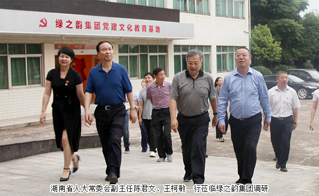 2017年6月22日,湖南省人大常委會(huì)副主任陳君文、王柯敏一行蒞臨綠之韻調(diào)研。綠之韻集團(tuán)董事長(zhǎng)胡國(guó)安,綠之韻集團(tuán)(中國(guó)區(qū))副總裁、國(guó)際商學(xué)院榮譽(yù)院長(zhǎng)張力中,綠之韻集團(tuán)副總經(jīng)理胡均安,綠之韻集團(tuán)黨委書(shū)記劉云、副書(shū)記許達(dá)仲,綠之韻集團(tuán)總裁助理蔣文等陪同調(diào)研。