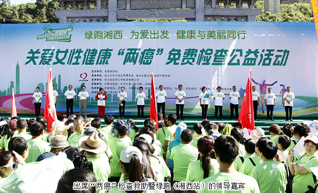 為切實(shí)把這項(xiàng)“造福廣大農(nóng)村家庭和關(guān)愛女性健康的民心工程”不折不扣地落實(shí)好,讓適齡婦女群眾真正得實(shí)惠、普受惠、長受惠。2017年5月13日,由中共湖南省委統(tǒng)戰(zhàn)部、湖南省婦女聯(lián)合會、湖南省衛(wèi)生和計(jì)劃生育委員會、湖南省海外聯(lián)誼會、中共湘西自治州委統(tǒng)戰(zhàn)部、湘西自治州婦女聯(lián)合會、湘西自治州衛(wèi)生和計(jì)劃生育委員會、湘西自治州海外聯(lián)誼會以及綠之韻集團(tuán)聯(lián)合開展的“關(guān)愛女性健康‘兩癌’免費(fèi)檢查暨綠跑公益活動”在湘西自治州吉首市舉行。