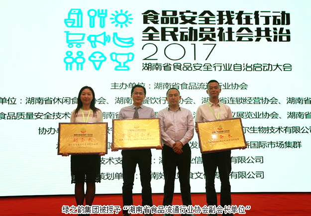 民以食為天,食以安為先。在全國人大通過新《食品安全法》兩周年之際,2017年4月24日,在湖南省食品藥品監(jiān)督管理局及相關政府部門支持下,由湖南省食品流通行業(yè)協(xié)會主辦的以“食品安全我在行動,全民動員社會共治”為主題的2017湖南省食品安全行業(yè)自治啟動大會在湖南長沙隆重舉行。湖南省食品藥品監(jiān)督管理局副局長吳公平,長沙市食品藥品監(jiān)督管理局黨組成員、副局長譚志國,寧鄉(xiāng)經濟技術開發(fā)區(qū)黨工委副書記、管委會主任戴中亞,望城經開區(qū)黨工委委員、管委會副主任姚羅光,湖南省食品流通行業(yè)協(xié)會會長張海清等領導嘉賓,與湖南省食品行業(yè)300余家企業(yè)齊聚一堂,共筑食品安全。綠之韻集團總裁勞嘉、森淼融聯(lián)執(zhí)行總裁施垚、綠之韻集團金融投資部項目總監(jiān)高潔、產品綜合管理部高級經理王薇受邀出席本次活動。