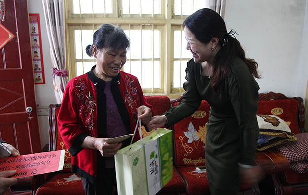 隨后,湖南省婦聯(lián)副主席盧妹香一行在勞嘉總裁的陪同下,來到瀏陽市永安鎮(zhèn)平頭村、水山村愛心走訪患癌的貧苦母親,為她們送去愛心慰問金和物品。