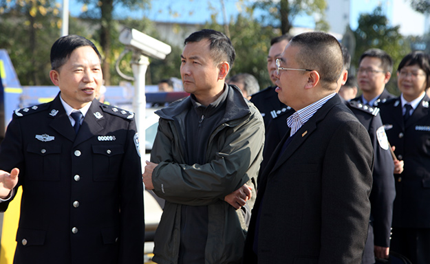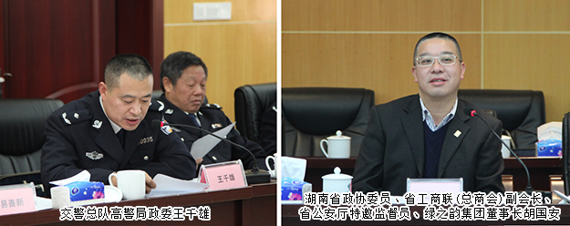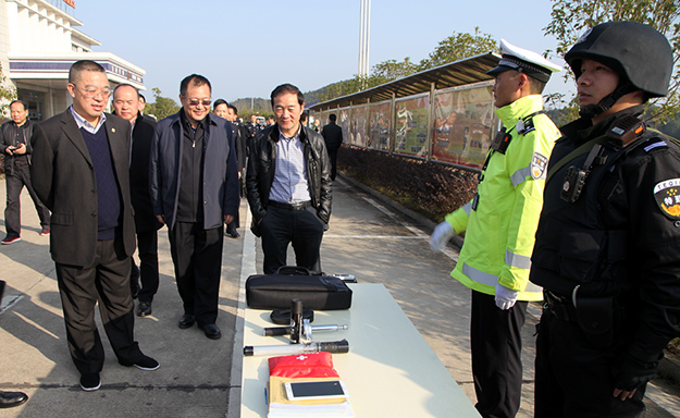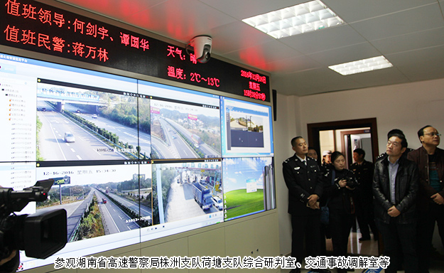 2016年12月16日下午,湖南省政協(xié)委員、省工商聯(lián)(總商會(huì))副會(huì)長、省公安廳特邀監(jiān)督員、綠之韻集團(tuán)董事長胡國安隨同湖南省公安廳黨委委員、紀(jì)委書記周賽保,省公安廳警令部副主任戴綱、紀(jì)委副書記宋紅兵、紀(jì)委副書記方士林、刑偵總隊(duì)政委馮偉儉、交警總隊(duì)政委楊能、交警總隊(duì)高警局政委王千雄、警務(wù)督察總隊(duì)政委王建國等一行赴湖南省高速警察局株洲支隊(duì)荷塘大隊(duì)調(diào)研。