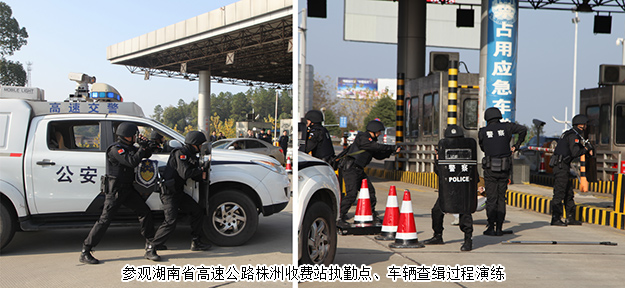 考察期間,湖南省公安廳特邀監(jiān)督員胡國安等一行先后參觀了湖南省高速公路株洲收費(fèi)站執(zhí)勤點(diǎn),湖南省高速警察局株洲支隊(duì)荷塘大隊(duì)交通違法處罰室、交通事故調(diào)解室、綜合研判室、執(zhí)法辦案區(qū),詳細(xì)聽取了警用裝備設(shè)施、警營文化建設(shè)等介紹,并與支隊(duì)工作人員親切交流。