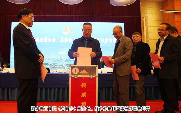 2016年12月10日,湖南省工商聯(lián)(總商會)十一屆七次常委會、十一屆六次執(zhí)委會議在長沙召開。中共湖南省委常委、省委統(tǒng)戰(zhàn)部部長黃蘭香,湖南省人民政府副省長何報(bào)翔,中共湖南省委統(tǒng)戰(zhàn)部常務(wù)副部長譚平出席會議。湖南省工商聯(lián)(總商會)副會長、綠之韻集團(tuán)董事長胡國安,湖南省工商聯(lián)女商會副會長、綠之韻集團(tuán)董事執(zhí)行總裁勞嘉以及湖南省工商聯(lián)(總商會)全體副主席、副會長、常執(zhí)委,省委統(tǒng)戰(zhàn)部、省工商聯(lián)機(jī)關(guān)處室負(fù)責(zé)人等參加會議。
