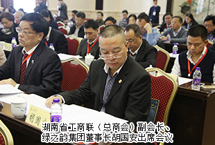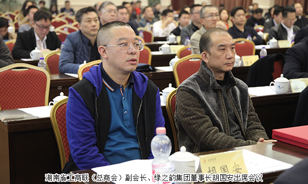 2016年11月29日上午,湖南省委非公有制經(jīng)濟(jì)工作會(huì)議在湖南賓館召開。中共湖南省委常委、省人民政府常務(wù)副省長(zhǎng)陳向群,中共湖南省委常委、省紀(jì)委書記傅奎,中共湖南省委常委、省委統(tǒng)戰(zhàn)部部長(zhǎng)黃蘭香,湖南省人民政府副省長(zhǎng)、省工商聯(lián)主席何報(bào)翔,湖南省人民政府副省長(zhǎng)張劍飛,湖南省政協(xié)副主席、民盟省委主委、省國(guó)土資源廳副廳長(zhǎng)楊維剛等出席會(huì)議,湖南省工商聯(lián)(總商會(huì))副會(huì)長(zhǎng)、綠之韻集團(tuán)董事長(zhǎng)胡國(guó)安出席本次會(huì)議。