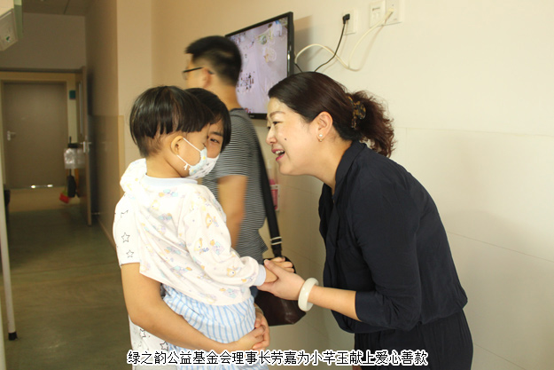 在得知了“小芊玉”的情況之后,綠之韻公益基金會(huì)理事長(zhǎng)勞嘉親赴醫(yī)院探望,并將愛心善款送到小芊玉父母手中,并表示,綠之韻集團(tuán)將會(huì)持續(xù)關(guān)注“小芊玉”的治療情況,她也呼吁更多的愛心人士伸出援手,幫助“小芊玉”早日戰(zhàn)勝病魔,快樂健康地長(zhǎng)大。在愛的接力下,小芊玉即將赴北京接受骨髓配型。關(guān)愛生命,綠之韻與愛同在!