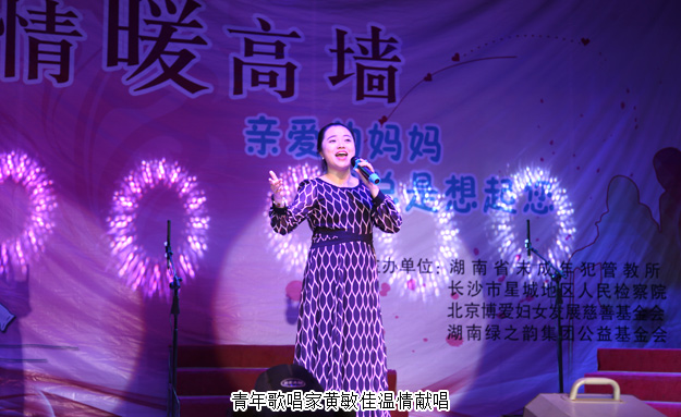 時值母親節(jié),青年歌唱家黃敏佳、李思思現(xiàn)場帶來《給母親的禮物》等歌曲,用動人的歌聲激勵服刑人員振作精神,好好改造,早日和親人團聚。“媽媽,我想你,想你在我夢里,還記得小時候在你懷里哭泣,給我呵護和疼愛的你,千言萬語都化成了一句:兒想你……”原湖南省未成年犯管教所一名學(xué)員原創(chuàng)歌曲《媽媽我想你》,緊緊揪住了現(xiàn)場每一位母親的心,一聲聲呼喚讓在場所有人的眼里都泛出了晶瑩的淚花。