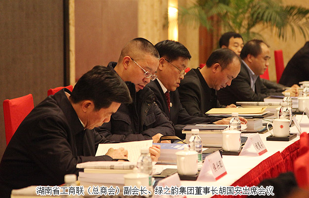 2016年1月11日,湖南省工商聯(lián)(總商會(huì))十一屆六次常委會(huì)議、十一屆五次執(zhí)委會(huì)議在長(zhǎng)沙召開(kāi),大會(huì)總結(jié)2015年工作,部署2016年任務(wù),會(huì)上還發(fā)出“積極參與‘萬(wàn)企幫萬(wàn)村’精準(zhǔn)扶貧”的行動(dòng)倡議。湖南省副省長(zhǎng)、省工商聯(lián)(總商會(huì))主席何報(bào)翔出席會(huì)議并講話(huà)。湖南省發(fā)改委副主任王亮方,湖南省工商聯(lián)(總商會(huì))副會(huì)長(zhǎng)、綠之韻集團(tuán)董事長(zhǎng)胡國(guó)安,湖南省工商聯(lián)女商會(huì)副會(huì)長(zhǎng)、綠之韻集團(tuán)董事執(zhí)行總裁勞嘉以及湖南省工商聯(lián)(總商會(huì))全體副主席、副會(huì)長(zhǎng)、常執(zhí)委,駐湘副省級(jí)以上地區(qū)異地商會(huì)會(huì)長(zhǎng)、秘書(shū)長(zhǎng),省委統(tǒng)戰(zhàn)部、省工商聯(lián)機(jī)關(guān)處室負(fù)責(zé)人參加會(huì)議。