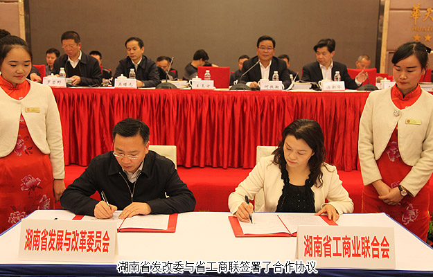 會(huì)上,湖南省發(fā)改委與省工商聯(lián)簽署了合作協(xié)議,湖南省發(fā)改委副主任王亮方作關(guān)于“十三五”規(guī)劃和“一帶一路”的講座。大會(huì)還審議通過(guò)了有關(guān)人事事項(xiàng)。