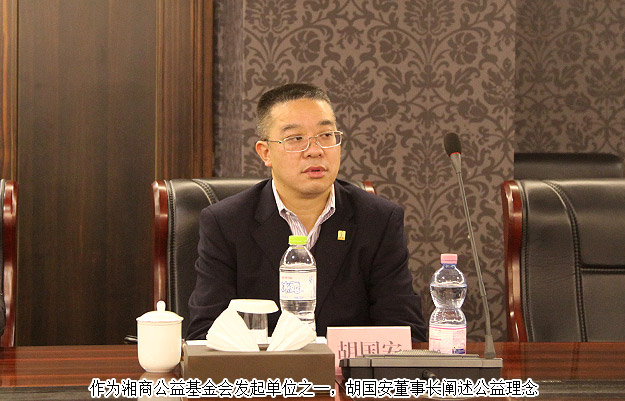 2016年1月5日,湖南省工商聯(總商會)全體主席會長召開,中共湖南省委常委、省委統(tǒng)戰(zhàn)部部長黃蘭香,湖南省副省長、省工商聯主席何報翔等出席會議并講話。同時,由省工商聯、綠之韻集團、愛爾眼科等聯合籌資600萬元成立的湖南省湘商公益基金會在本次會議中正式成立。中共湖南省委常委、省委統(tǒng)戰(zhàn)部部長黃蘭香為基金會成立授牌,綠之韻集團董事長胡國安作為湖南省工商聯(總商會)副會長、湘商公益基金會副理事長出席會議。