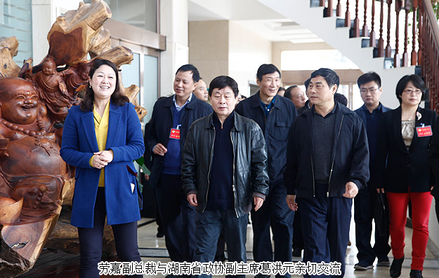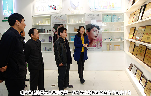 會(huì)后,湖南省政協(xié)副主席葛洪元等領(lǐng)導(dǎo)一行來到綠之韻進(jìn)行參觀指導(dǎo)。在綠之韻集團(tuán)董事長(zhǎng)胡國安、董事常務(wù)副總裁勞嘉的陪同下,考察組一行首先參觀了綠之韻集團(tuán)大樓,聽取了勞嘉副總裁對(duì)綠之韻系列產(chǎn)品、集團(tuán)總部辦公區(qū)、企業(yè)資質(zhì)和榮譽(yù)展示區(qū)的介紹。綠之韻“以產(chǎn)品為導(dǎo)向”和“互聯(lián)網(wǎng)+大健康產(chǎn)業(yè)”的發(fā)展戰(zhàn)略,優(yōu)質(zhì)的產(chǎn)品研發(fā)體系和良好的企業(yè)形象得到了考察組各位領(lǐng)導(dǎo)的高度認(rèn)可和贊譽(yù)。