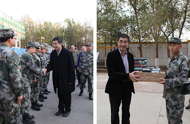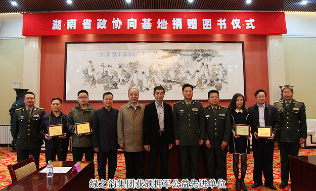 千年胡楊,不朽精神脊梁;大漠戈壁,盡顯英雄本色。在充滿光榮與夢(mèng)想的甘肅酒泉衛(wèi)星發(fā)射基地,2015年10月24—27日,中共十八屆三中全會(huì)即將召開(kāi)之際,“湘水情長(zhǎng)”——湖南省政協(xié)委員文化擁軍活動(dòng)在這里舉行?;顒?dòng)由總裝備部政治部、湖南省政協(xié)辦公廳主辦?;顒?dòng)向總裝備部政治部指定的50個(gè)基層連隊(duì)捐贈(zèng)價(jià)值過(guò)百萬(wàn)的雜志書(shū)籍、計(jì)算機(jī)設(shè)備等?;顒?dòng)由湖南省政協(xié)副主席張大方帶隊(duì)前往,省政協(xié)副秘書(shū)長(zhǎng)、辦公廳主任、研究室主任吳志憲、省政協(xié)研究室副主任江涌等領(lǐng)導(dǎo)也隨隊(duì)前往,湖南衛(wèi)視、基地東風(fēng)電視臺(tái)全程報(bào)道。綠之韻集團(tuán)作為活動(dòng)支持單位,獲頒“湘水情長(zhǎng),文化擁軍”擁軍公益先進(jìn)單位,胡國(guó)安委員參與活動(dòng)。
