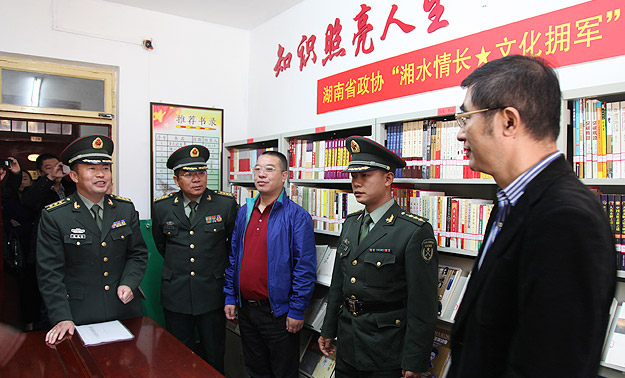 代表隊(duì)一行對(duì)駐地官兵表示慰問(wèn),參觀士兵宿舍、連隊(duì)閱覽室,仔細(xì)詢問(wèn)官兵們的生活工作情況,贈(zèng)送500多冊(cè)圖書(shū)、筆記本電腦、電子書(shū)等。官兵們的艱苦條件讓湖南省政協(xié)委員擁軍活動(dòng)一行深受感動(dòng),紛紛表示,他們就是當(dāng)代最可愛(ài)的人。