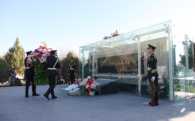 “死在戈壁灘、埋在青山頭”。26日上午,湖南省政協(xié)委員文化擁軍活動(dòng)一行來(lái)到東風(fēng)革命烈士陵園,向革命先烈敬獻(xiàn)花籃。陵園里安葬著聶榮臻元帥和為我國(guó)航天科技事業(yè)獻(xiàn)身的700名烈士。張大方副主席等一行瞻仰了聶帥墓和革命紀(jì)念碑,對(duì)烈士們的奉獻(xiàn)精神表示由衷敬意。