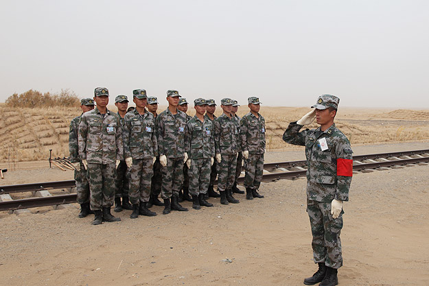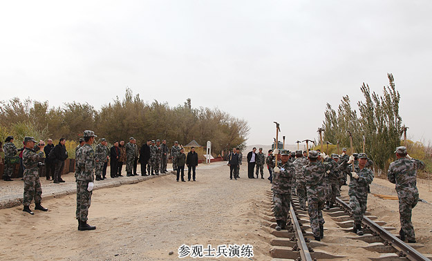 “狂風(fēng)可卷千堆雪,壯士能抵萬(wàn)頃沙”。25日,湖南省政協(xié)委員文化擁軍活動(dòng)一行搭乘軍用專列,近4小時(shí)車程后來(lái)到基地鐵路管理處的“鐵四連”進(jìn)行捐贈(zèng)慰問(wèn)活動(dòng)。駐地在巴丹吉林沙漠邊緣的“鐵四連”是基地最偏遠(yuǎn)、最艱苦的連隊(duì),為了防止風(fēng)沙埋道,保證線路安全暢通,風(fēng)沙越大越要在線路上堅(jiān)守。