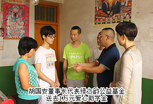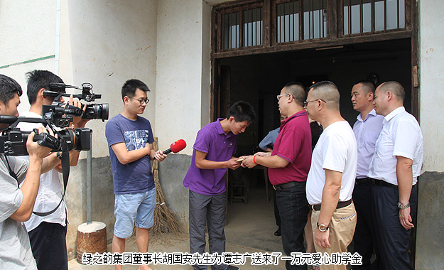 智廣以621分的高考成績考上了大連理工大學(xué),綠之韻集團(tuán)董事長胡國安先生與湖南地區(qū)的愛心經(jīng)銷商代表們?yōu)橹菑V送來了一萬元愛心助學(xué)金。胡國安董事長鼓勵(lì)智廣,暫時(shí)的困境并不可怕,最重要的是克服困難好好學(xué)習(xí),勇敢地走出去,通過自己的努力,成為家人的驕傲,成為可以幫助別人的人。