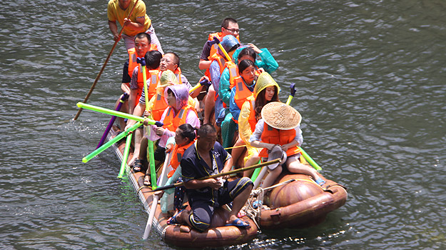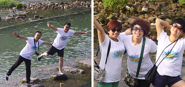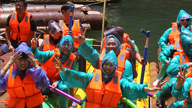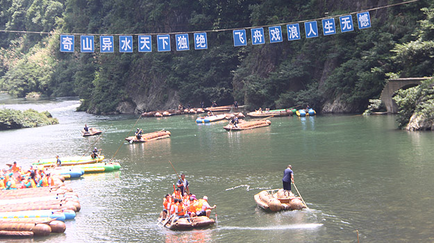 第二天上午,從“哈妮宮”出發(fā),順水而下,一葉扁舟,在原始次生林的高山峽谷之中,身著救身衣、乘皮舟、闖險灘、博激流、沿途觀美景、沐瀑流、打水仗、過峽關(guān),出沒浪端谷底,途徑三角巖、雞籠門、落水坑瀑布、夢思峽……數(shù)十個景點,絡(luò)繹而至,美不勝收。綠之韻家人在這里放歌長嘯,唱起了綠之韻戰(zhàn)歌,戲水嘻鬧,找回快樂的自我。