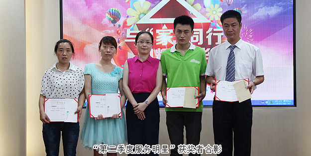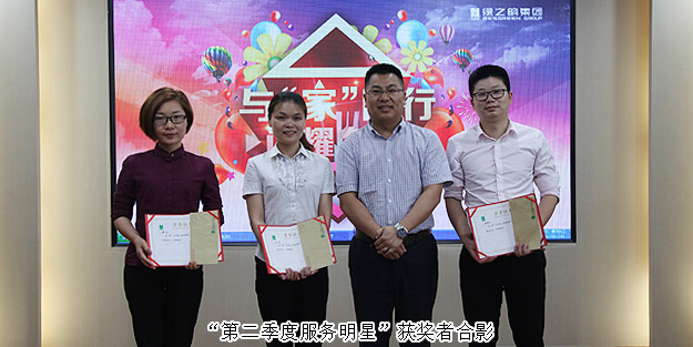 2015年新晉員工在大會(huì)上進(jìn)行了自我介紹和風(fēng)采展示,彰顯出新人積極向上的精神面貌。同時(shí),大會(huì)還對(duì)表現(xiàn)優(yōu)秀的員工和集體給予了隆重表彰:業(yè)務(wù)服務(wù)部、數(shù)據(jù)管理中心、產(chǎn)品綜合管理部、山東分公司、儲(chǔ)運(yùn)部榮獲“第二季度優(yōu)秀服務(wù)集體”;侯俊霞、李恒華、王艷、譚紅、陳建輝、李倩婷、王芬、高素丹、夏丹、曹峰、盧再林、劉圣雄、趙光意等十多位員工光榮成為“第二季度服務(wù)明星”;夏運(yùn)良、王芬、王壯在黨支部的領(lǐng)導(dǎo)下,積極參與黨組織各項(xiàng)活動(dòng),榮獲“綠之韻黨支部?jī)?yōu)秀共產(chǎn)黨員”稱號(hào)。獲獎(jiǎng)部門代表、個(gè)人依次踏上領(lǐng)獎(jiǎng)臺(tái),享受大家的聲聲祝福和熱烈掌聲,分享快樂(lè)和喜悅。