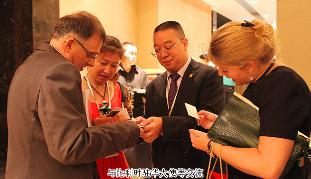 2015年6月20日—6月28日,比利時國王菲利普及馬蒂爾德王后訪華。在為期八天的訪問行程中,國王夫婦進(jìn)行了一系列官方、商務(wù)、文化和學(xué)術(shù)活動。23日,國家主席習(xí)近平在人民大會堂東門外廣場舉行歡迎儀式,歡迎菲利普國王一行。本次陪同出訪的有比利時外交大臣、3位比利時地區(qū)首席大臣,還包括比利時企業(yè)、高校、媒體等重要代表。24日“投資比利時”研討會在北京金融街威斯汀大酒店二層盛大召開。比利時國王菲利普先生、商務(wù)部副部長王受文先生、比利時—中國經(jīng)貿(mào)委員會主席Dewit Bernard先生出席并分別致詞。綠之韻集團(tuán)董事長胡國安受比利時駐華大使館邀請出席本次會議。
