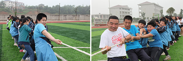 捐贈活動結(jié)束后,在胡國安董事長、勞嘉副總裁的親自帶領(lǐng)下,綠之韻的愛心志愿者及經(jīng)銷商們還與學校師生互動,進行拔河比賽、乒乓球比賽,現(xiàn)場同學們熱情高漲,歡呼聲、加油聲此起彼伏。