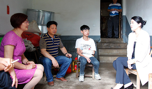 陽宇楨媽媽滿臉笑容,正在為志愿者們準備茶水,看著她溫和的樣子或許你不會想到她患有抑郁癥。陽宇楨爸爸2009年確診為腸癌,手術(shù)過后還需要定期化療,在家里債臺高筑的情況下只能堅持帶病工作,后又因為意外事故摔傷骨折。媽媽因為家中連串變故出現(xiàn)精神異常的情況,也需要定期前往醫(yī)院復診。一家人輾轉(zhuǎn)來到瀏陽。