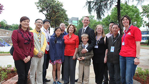 九點(diǎn)半到達(dá)衡陽春天服務(wù)中心時,活動現(xiàn)場已然是一片歡樂的海洋。衡陽春天服務(wù)中心的新家院子用鮮艷的花朵裝扮一新,小朋友們穿著漂亮的衣衫,拿著彩色的氣球,在護(hù)理員的陪同下玩耍。還有很多和綠之韻人一樣的愛心人士、志愿者以及遠(yuǎn)道而來的國際義工們都?xì)g聚在此。沒有陌生與隔閡,不分國籍和語言,胡國安董事長和勞嘉副總裁帶著綠之韻志愿者們和孩子一起說話、唱歌、做操……每一個人臉上都洋溢著快樂純粹的笑容。