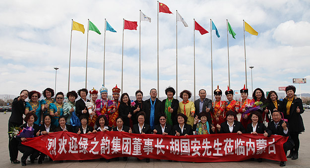 2015年4月9日,胡國安董事長借參加綠之韻內(nèi)蒙古高峰論壇之機,親赴內(nèi)蒙古一線市場考察情況,了解當(dāng)?shù)厥袌鲞\營、專賣店建設(shè)等情況。綠之韻內(nèi)蒙古地區(qū)優(yōu)秀經(jīng)銷商王連坤、郝建兵、張聞英、喬桂英等全程陪同。
