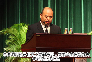 適應(yīng)新常態(tài),謀求新跨越。為貫徹落實中共長沙市委、瀏陽市委經(jīng)濟(jì)工作會議精神,表彰先進(jìn)企業(yè)和個人,認(rèn)真總結(jié)去年經(jīng)濟(jì)工作,全面部署今年經(jīng)濟(jì)工作,2015年3月17日,國家級瀏陽經(jīng)濟(jì)技術(shù)開發(fā)區(qū)2015年度經(jīng)濟(jì)工作會議在金陽藝術(shù)中心大劇院成功召開。中共瀏陽經(jīng)開區(qū)黨工委書記周岳云,黨工委副書記、管委會主任郭力夫等領(lǐng)導(dǎo)蒞臨大會現(xiàn)場。綠之韻集團(tuán)作為受表彰的企業(yè)參加了會議,綠之韻集團(tuán)董事常務(wù)副總裁勞嘉、集團(tuán)黨總支部書記許達(dá)仲、綠之韻國際大酒店副總經(jīng)理胡均安等應(yīng)邀出席。