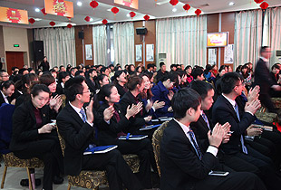 為夢(mèng)想喝彩,為發(fā)展揚(yáng)帆,為努力者點(diǎn)贊。會(huì)上,綠之韻集團(tuán)高管相繼就公司企業(yè)戰(zhàn)略、市場(chǎng)發(fā)展籌劃、市場(chǎng)目標(biāo)等做戰(zhàn)略規(guī)劃。綠之韻集團(tuán)董事常務(wù)副總裁勞嘉在講話中鼓勵(lì)所有綠之韻員工在新的一年里,用行動(dòng)見(jiàn)證力量,決勝2015我們蓄勢(shì)騰飛,展望未來(lái)我們躊躇滿志!