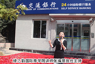 交通銀行瀏陽支行副行長(zhǎng)何曼曼在揭幕儀式上發(fā)表致辭。她對(duì)綠之韻成立11周年表示熱烈祝賀,并對(duì)此次合作寄予厚望。她表示:多年來,交通銀行和綠之韻集團(tuán)一直保持著非常好的合作關(guān)系。今年,為了給廣大經(jīng)銷商提供更人性化的服務(wù),綠之韻向我行申請(qǐng)?jiān)诩瘓F(tuán)公司設(shè)立自助銀行,這是全省極為罕見的專門為一個(gè)公司而建設(shè)自助銀行,在這個(gè)過程中,得到了交通銀行湖南省分行的高度重視,得到了綠之韻公司的大力支持。今天,交通銀行綠之韻自助銀行正式開業(yè)了,這意味著我們雙方的合作將更加緊密?!敖?jīng)濟(jì)活,金融活”。今天工業(yè)園的發(fā)展日新月異,成為了瀏陽經(jīng)濟(jì)增長(zhǎng)的主力軍,交通銀行瀏陽支行將繼續(xù)做好網(wǎng)點(diǎn)布局工作,為瀏陽企業(yè)和市民提供更加優(yōu)質(zhì)、更專業(yè)的服務(wù)。