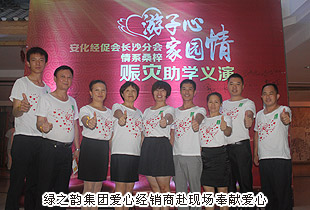 在接受湖南衛(wèi)視著名主持人王歡采訪時,胡國安董事長臉上溢滿凝重,眼中飽含熱淚,幾句簡單而樸實的話語幾乎感動了現(xiàn)場所有的人:“我在安化鄉(xiāng)音中啟蒙,伴著改革開放長大,無論身在何方,都無法割舍我對生我養(yǎng)我的家鄉(xiāng)安化的深深思念和無限牽掛。沒有安化,就沒有綠之韻;災(zāi)害無情,游子有愛。作為一名安化大山深處走出來的企業(yè)家,更應(yīng)關(guān)注家鄉(xiāng),情系家鄉(xiāng),建設(shè)家鄉(xiāng),回報家鄉(xiāng),主動承擔(dān)社會責(zé)任,用愛回報廣大桑梓。捐款只是一個開始,綠之韻集團(tuán)將資助更多家鄉(xiāng)公益事業(yè),繼續(xù)關(guān)注安化災(zāi)區(qū)重建,幫助災(zāi)區(qū)的人民渡過難關(guān)、重建美好家園,幫助受災(zāi)的莘莘學(xué)子早日重返校園!”