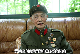 爾后,慰問(wèn)小隊(duì)一行又來(lái)到了老紅軍張生榮家中?!笆吕飦?lái)秋風(fēng)涼,中央紅軍遠(yuǎn)征忙;星夜渡過(guò)于都河,古陂新田打勝仗”。這首長(zhǎng)征組詩(shī),是紅軍夜渡于都河踏上漫漫長(zhǎng)征路的真實(shí)寫(xiě)照。而老紅軍張生榮再念起這首詩(shī)時(shí),卻有著無(wú)盡的懷念。說(shuō)起當(dāng)年的戰(zhàn)斗,老紅軍張生榮,尤其興奮,長(zhǎng)征中紅軍搶渡大渡河、17勇士飛奪瀘定橋的戰(zhàn)斗中,作為司號(hào)員的張生榮,昂首挺胸吹響了沖鋒號(hào)……張老眉胡皆白,耳朵已經(jīng)聽(tīng)不大清楚,但精神抖擻,坐姿筆體,寬大手掌力氣不小。張老說(shuō),這都是練出來(lái)的,即使現(xiàn)在還會(huì)不時(shí)炸些花生米,自我慰勞。只有經(jīng)歷了戰(zhàn)爭(zhēng)的洗禮,才會(huì)更加珍惜今天的和平與幸福。才離休那會(huì),張老還經(jīng)常發(fā)揮余熱,到工廠、學(xué)校、機(jī)關(guān)作報(bào)告,講長(zhǎng)征精神,講革命傳統(tǒng),講白求恩大夫的事跡。