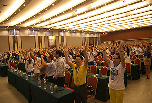 如果采摘藍莓,參觀基地,品藍莓酒,瀟灑過把“莊主”癮,這些都還嫌不夠,那么第二天的精彩行程,絕對讓精英們High翻全城。6月22日上午,綠之韻國際藍莓節(jié)旅游培訓(xùn)會如期舉行。特邀業(yè)界享有盛譽的營養(yǎng)學(xué)導(dǎo)師王國佐教授,為綠之韻精英們帶來了“藍莓對人體健康”的專業(yè)演講;綠之韻國際商學(xué)院執(zhí)行院長孫心琥震撼全場的精彩課程,贏得了現(xiàn)場一陣又一陣熱烈的掌聲;綠之韻集團全球營銷中心(中國區(qū))常務(wù)副總經(jīng)理諶獻軍“天城網(wǎng)規(guī)劃”的主題演講,給家人們送來了打開財富、夢想之門的另一把“金鑰匙”。在全場家人們的起立鼓掌下,胡國安董事長激情澎湃地走上舞臺,發(fā)表了震撼人心的重要講話。