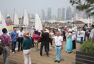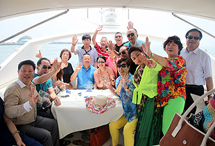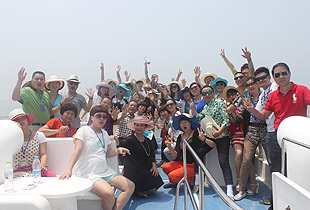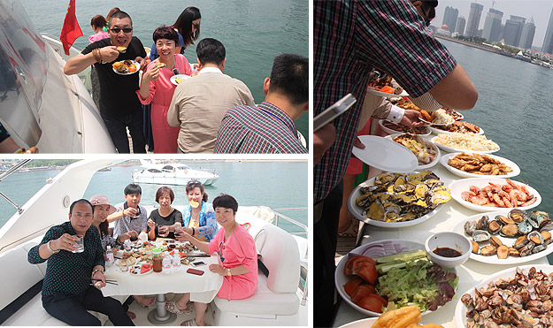 驕陽海風(fēng)下,游艇載著綠之韻精英們在碧波萬頃,一望無際的海上破浪前行。三艘游艇沿著青島著名景觀航線“奧帆中心——五四廣場——太平角——第二海水浴場——八大關(guān)——匯泉灣——棧橋——海軍博物館——團島灣——跨海大橋——北海船廠”,綠之韻精英們有的欣賞青島美景,有的悠閑聊天,有的暢享美食,有拍照合影,不亦樂乎。