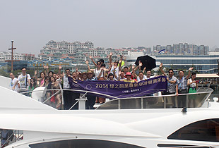 6月23日,碧空如洗,海風(fēng)拂面,山東青島2008年奧帆賽訓(xùn)練基地內(nèi),游人如織,熱鬧非凡,2014綠之韻至尊皇冠游艇俱樂部(青島航線)出航儀式圓滿舉行。這是一次高規(guī)模、高檔次、高品位的綠之韻精英聚會。在歡呼聲與掌聲中,在美麗藍莓天使的簇擁下,綠之韻集團董事長親自為曹鳳華、徐華、張建軍、張吉慶、韓曉鳴、蘇龍輝、鄭百合、黃翔、李政沅、劉鳳軍、劉建平、劉文麗、孫彩虹、李長宇、陳平、李平首批16位綠之韻游艇俱樂部特邀會員頒發(fā)了象征無上榮耀的水晶紀念牌。
