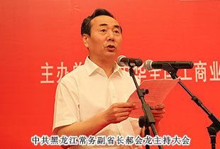 中央統(tǒng)戰(zhàn)部副部長,全國工商聯(lián)黨組書記、常務(wù)副主席全哲洙,全國工商聯(lián)副主席黃小祥、謝經(jīng)榮、黃榮、莊聰生、李路、林毅夫、安七一和兼職副主席、中國民間商會(huì)副會(huì)長及黑龍江省政協(xié)主席杜宇新、中共黑龍江省委副書記陳潤兒等各級(jí)省、市領(lǐng)導(dǎo)出席。中共黑龍江省委常委、副省長郝會(huì)龍主持。