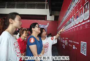 九點,主辦方宣布活動開始。踴躍的綠之韻愛心志愿者們雖著急捐款,卻井然有序。他們在門口排成長隊,依次進入。而坐在座位上,期盼著好心人的孩子們沿著活動大廳周邊坐著,等待著捐款。每位孩子旁邊各有一位工作人員協(xié)助接受捐贈并開具票據(jù)。在孩子們背后的墻上,滿滿當(dāng)當(dāng)?shù)膶懼麄兤D苦的經(jīng)歷。有父母早逝,離異,從小與年邁的爺爺奶奶相依為命的孩子;也有家人重病,為治病負債累累,居無定所的孩子;還有家中毫無經(jīng)濟支撐,又逢天災(zāi),消瘦如骨的孩子;他們每個人都十分拮據(jù),溫飽都解決不了,生活更難以為繼,但是面對困難,他們臉上所透出的是不屈不撓。雖然在夾縫中生存著,卻大多能保持向上的心,從小便養(yǎng)成了勤奮、懂事、好學(xué)的好習(xí)慣,這些無不感動現(xiàn)場的愛心人士。
