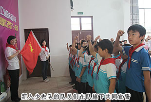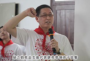 接著,在綠之韻黨總支部代表湛亮的引領(lǐng)下,新入少先隊的同學(xué)們在團旗下共同宣誓,加入共青團少先隊的行列,為共產(chǎn)主義事業(yè),貢獻出一切力量!而綠之韻慈善基金的愛心志愿者們也共同宣誓,積極倡導(dǎo) “造福人類、回饋社會”的志愿者精神。幫助需要幫助的人,使人生價值得以璀璨發(fā)光。讓我們用愛撐起一片藍天,用情滋潤心田,共筑愛心長城。