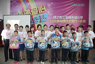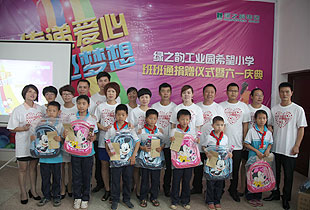 少年強,則中國強。關(guān)注少年,傳遞愛心,放飛夢想。 捐贈儀式上,22個來自貧困家庭的孩子還得到了特別的六一禮物,由現(xiàn)場愛心志愿者們捐贈購買的愛心書包以及共同籌集的愛心款。滿腔關(guān)愛有如涓涓細流匯入孩子們的心田,匯愛成海是我們綠之韻慈善志愿者的共同志愿。正如儀式上四位黨團支部成員舞動的手語舞“讓愛傳出去”,讓我們將愛傳出去,傳遍神舟四海。所謂萬涓成水,必能 匯愛成海!