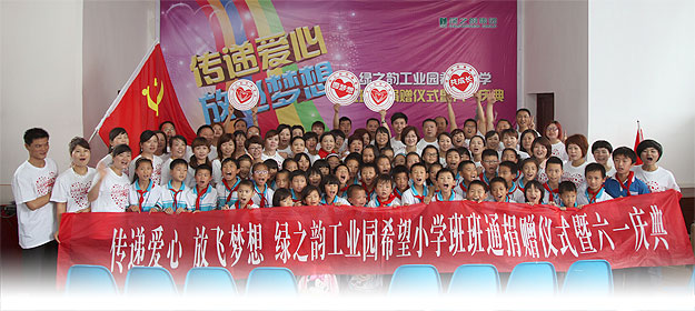 綠之韻捐助的第一所希望小學(xué)——綠之韻工業(yè)園希望小學(xué)里,標(biāo)準(zhǔn)化的教學(xué)大樓、平地而起的教學(xué)大樓,整潔干凈的學(xué)生食堂,寬敞明亮的學(xué)生宿舍,還有聲聲入耳的朗朗讀書聲,無不展現(xiàn)出蓬勃朝氣。誰能想到,十年前這所學(xué)校破損不堪的模樣。2004年10月19日,綠之韻公司捐助了這所希望小學(xué),兩年時間,綠之韻老屋希望小學(xué)引起了瀏陽生物醫(yī)藥園的關(guān)注,在當(dāng)?shù)卣膸椭聵?biāo)準(zhǔn)化的小學(xué)拔地而起,2006年8月學(xué)校正式搬遷新址。至此之后,綠之韻集團每年都會與綠之韻工業(yè)園希望小學(xué)開展形形色色的歡慶的活動。2013年,綠之韻工業(yè)園希望小學(xué)再次求助,期望綠之韻集團幫助學(xué)校推進新課程改革,提升辦學(xué)水平,開設(shè)班班通建設(shè)項目。而綠之韻集團在得到該消息后,立即籌措5萬元多的現(xiàn)金以及部分愛心物資,為學(xué)校捐資解難。